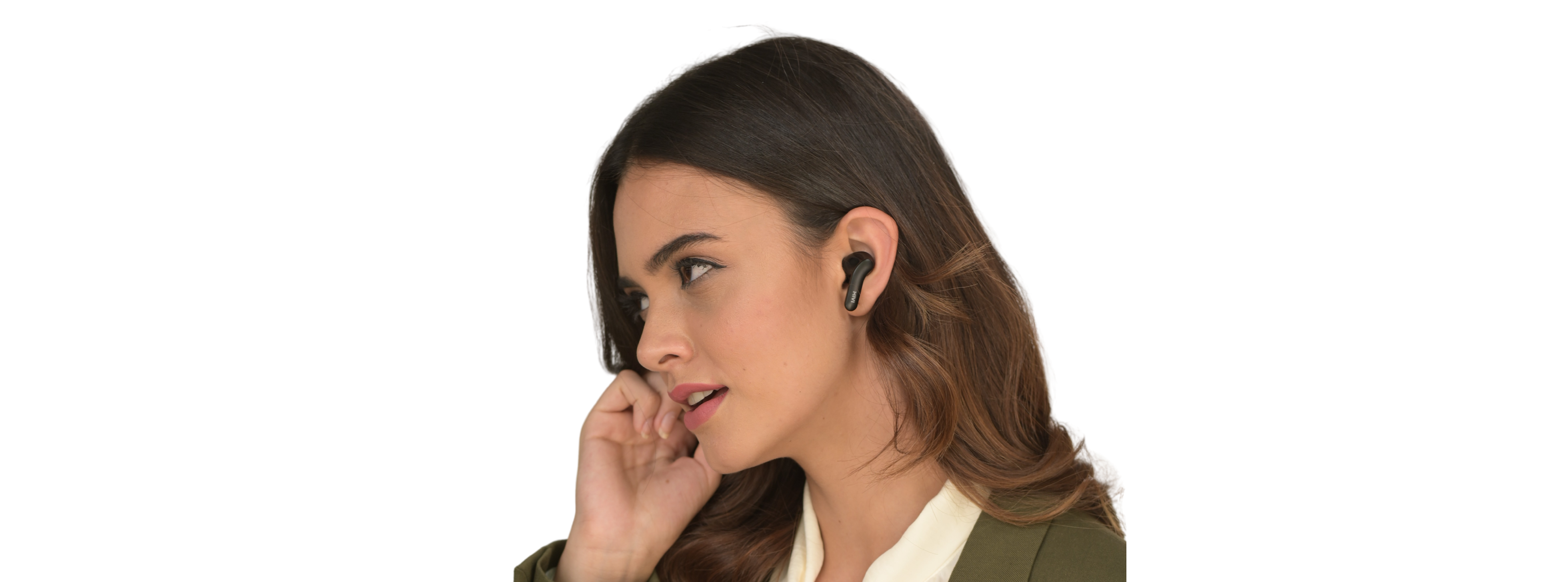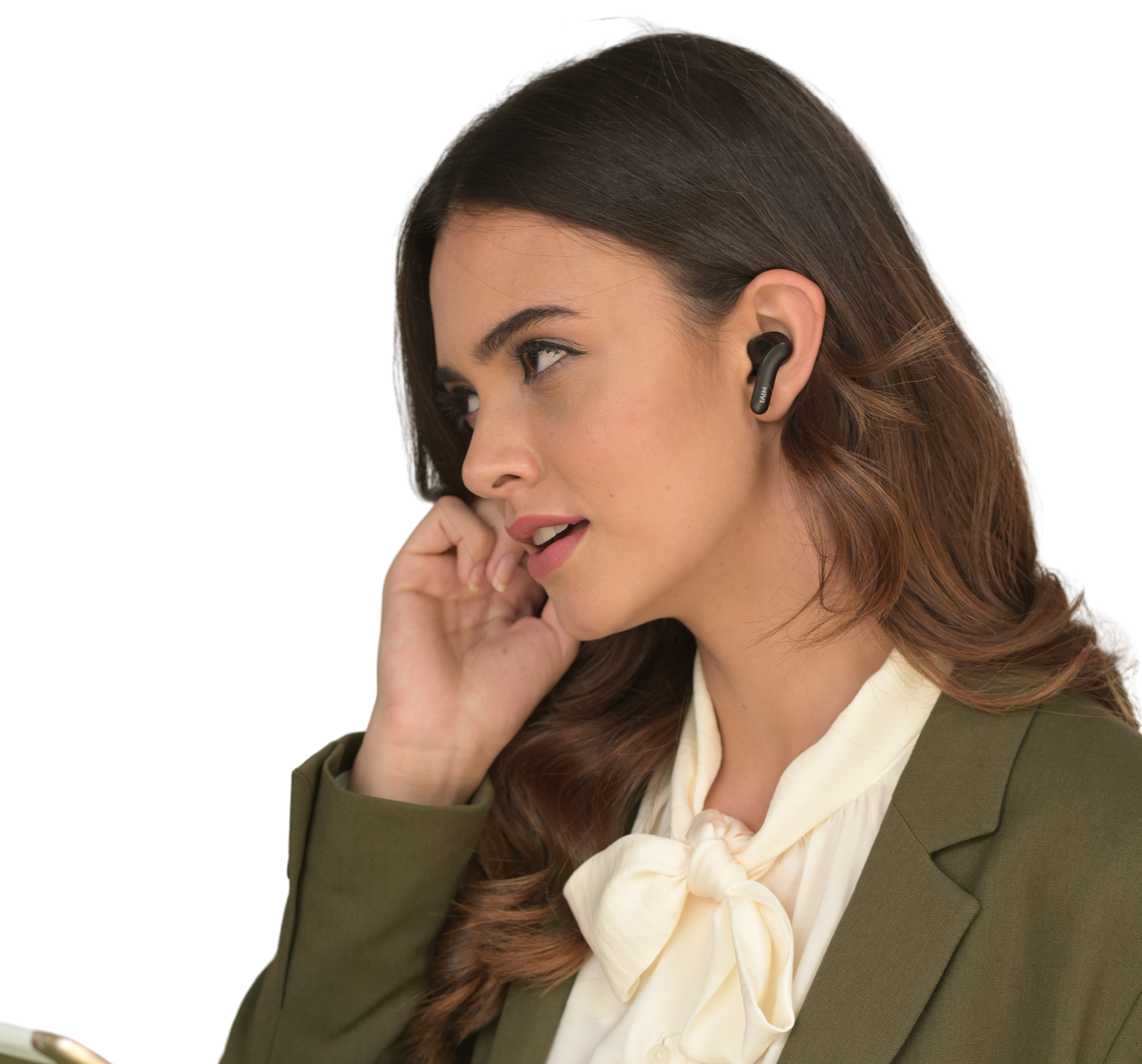 Insert the earbud into your ear and rotate to fit comfortably. Ensure the microphone is pointing towards your mouth.