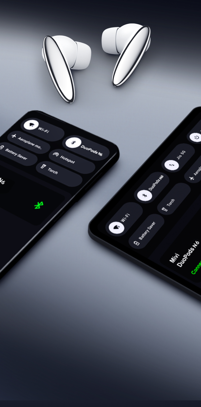 DuoPods N6 is designed, engineered, and crafted in India by us with love for you. Own the Indian made and say with pride, "MIVI APNA HAI".