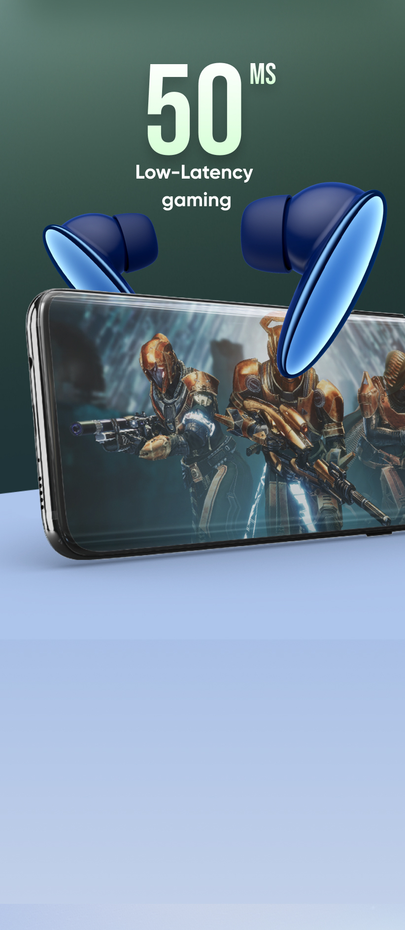 The electroplated 13mm drivers deliver such powerful audio that every beat can be felt in the bones. Unfold the most refined audio quality in a TWS. Experience clear highs, great mid and crisp lows as the beat drops or touches an all-time high.